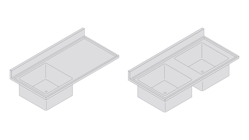 (Optional, upon request, please call). Select sink style, size and position in counter top. Determine sink size (single or double bowl, width, and depth).