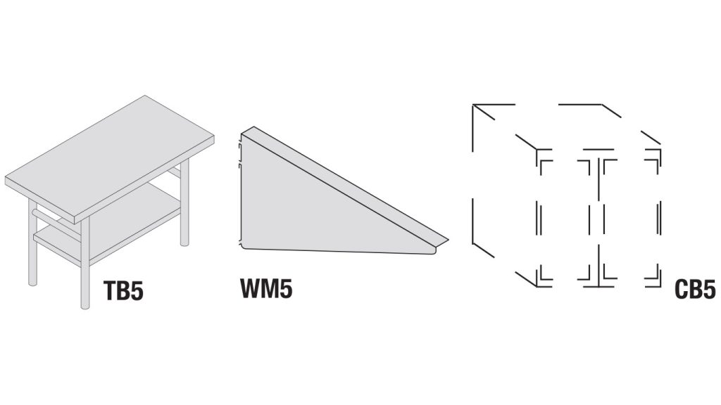 Select your installation method. If selecting to set your countertop on cabinets (CB5) we will ship tops flat. If selecting a table (TB5), table base will be sized to match top dimensions. If selecting to mount your countertop to the wall (WM5), the appropriate depth bracket will be shipped.